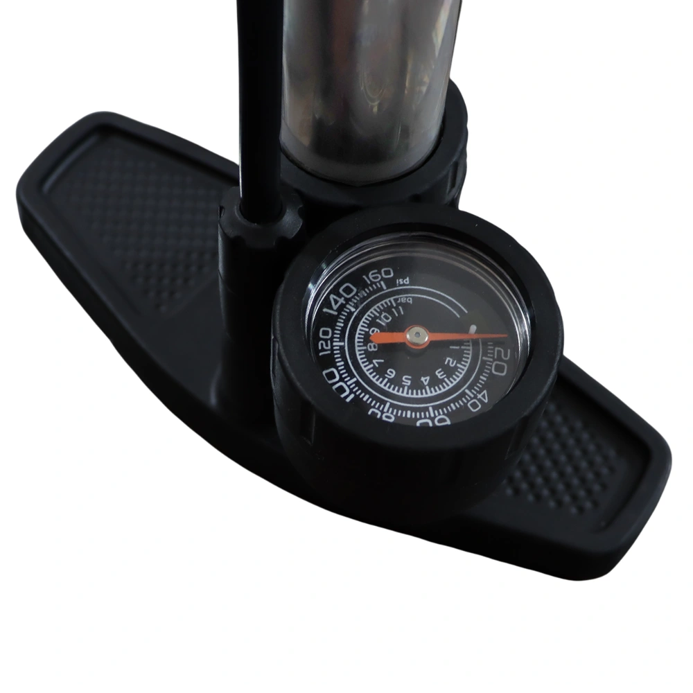 یکی از ویژگیهای برجسته این تلمبه، وجود گیج آنالوگ دقیق است که امکان اندازهگیری فشار باد تا 160PSI (معادل 11 بار) را فراهم میکند. این گیج به کاربر اجازه میدهد که به راحتی و با دقت بالا فشار باد لاستیک را تنظیم کند و از تنظیم نادرست که ممکن است باعث کاهش عمر لاستیک یا ناامنی در سواری شود، جلوگیری کند.