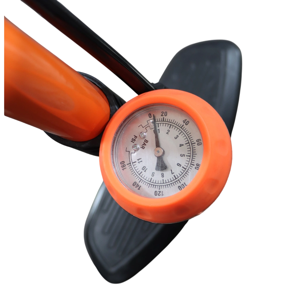 یکی از ویژگیهای برجسته تلمبه دوچرخه توربو مدل TURBO 160PSI، وجود فشارسنج دقیق متصل به بدنه است. این فشارسنج بهطور دقیق فشار باد داخل تایر دوچرخه را نشان میدهد و به شما این امکان را میدهد که به راحتی فشار مناسب را تنظیم کرده و از آسیب به تایر جلوگیری کنید. فشارسنج این مدل از دقت بالایی برخوردار است و قادر است فشار باد را در محدوده ۰ تا 160PSI اندازهگیری کند.