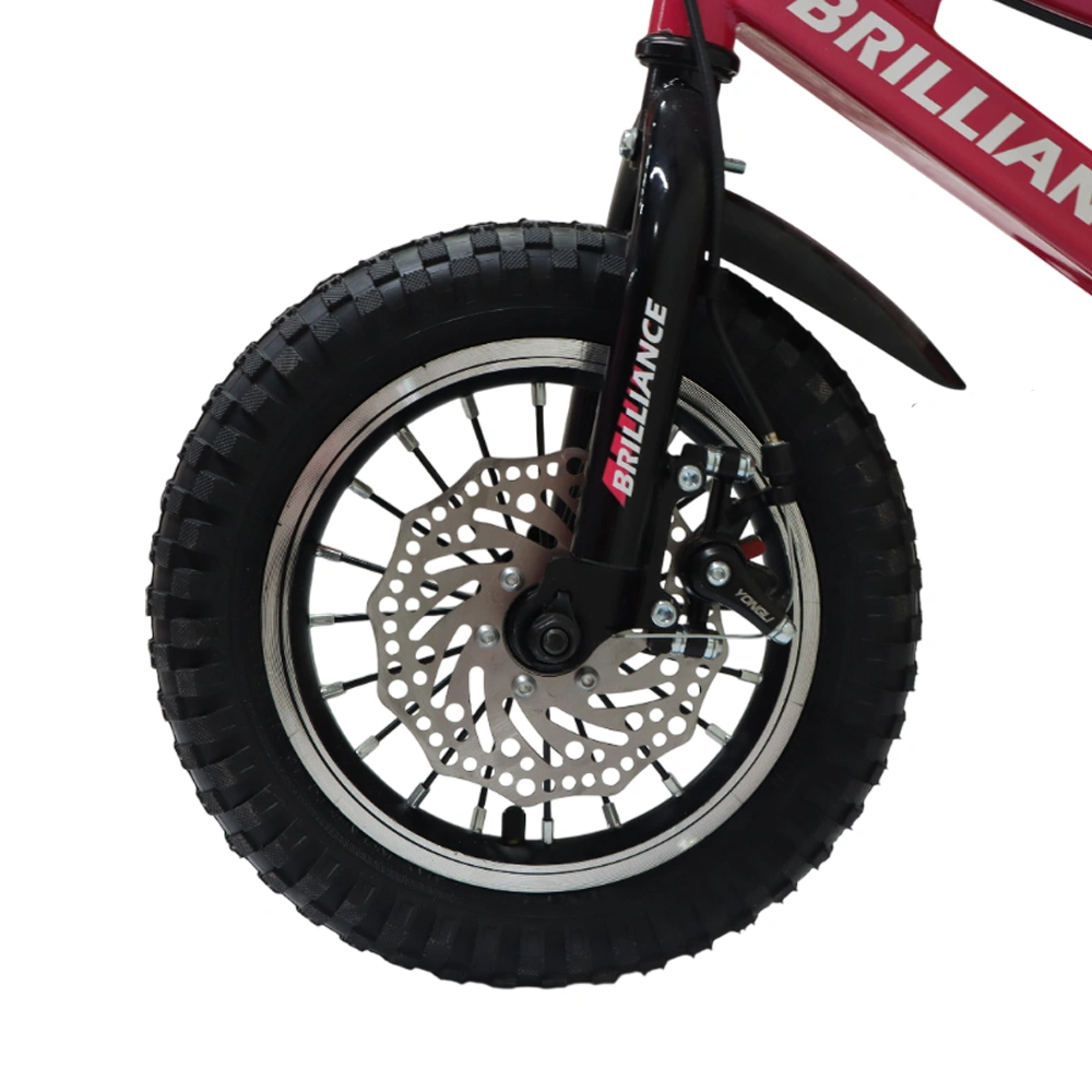 در این دوچرخه از سیستم ترمز دیسکی استفاده شده که در مقایسه با ترمزهای لقمهای سنتی، عملکرد سریعتر، قویتر و کنترل دقیقتری دارد. این ویژگی در حفظ ایمنی کودک، بهویژه در مسیرهای ناهموار یا سرعتهای بالاتر، بسیار مؤثر است.