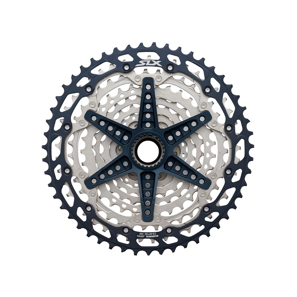 خودرو دوچرخه 12 سرعته شیمانو SHIMANO SLX CS-M7100 یکی از حرفهایترین و بادوامترین خودروهای شرکت شیمانو است که برای دوچرخههای کوهستان و حرفهای طراحی شده است. این مدل با بهرهگیری از فناوری +Hyperglide، تعویض دندهای سریع، نرم و دقیق را در هر دو جهت فراهم میکند و باعث میشود حرکت زنجیر بدون لرزش و وقفه انجام شود.