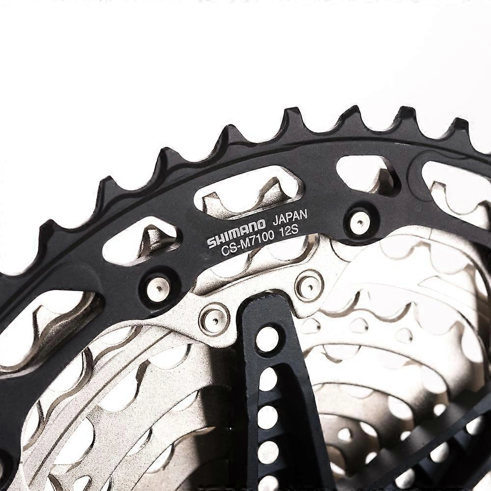 Shimano SLX CS-M7100 در دو نسخه با محدوده دندانه 10-45 و 10-51 تولید میشود که بسته به نیاز دوچرخهسوار، هم برای مسیرهای سراشیبی و هم سربالایی انتخاب ایدهآلی است. طراحی آن شامل پایه (Spider) آلومینیومی و چرخدندههایی از جنس فولاد و آلومینیوم آنودایز شده است که ترکیبی از استحکام بالا و وزن سبک را فراهم میکند.