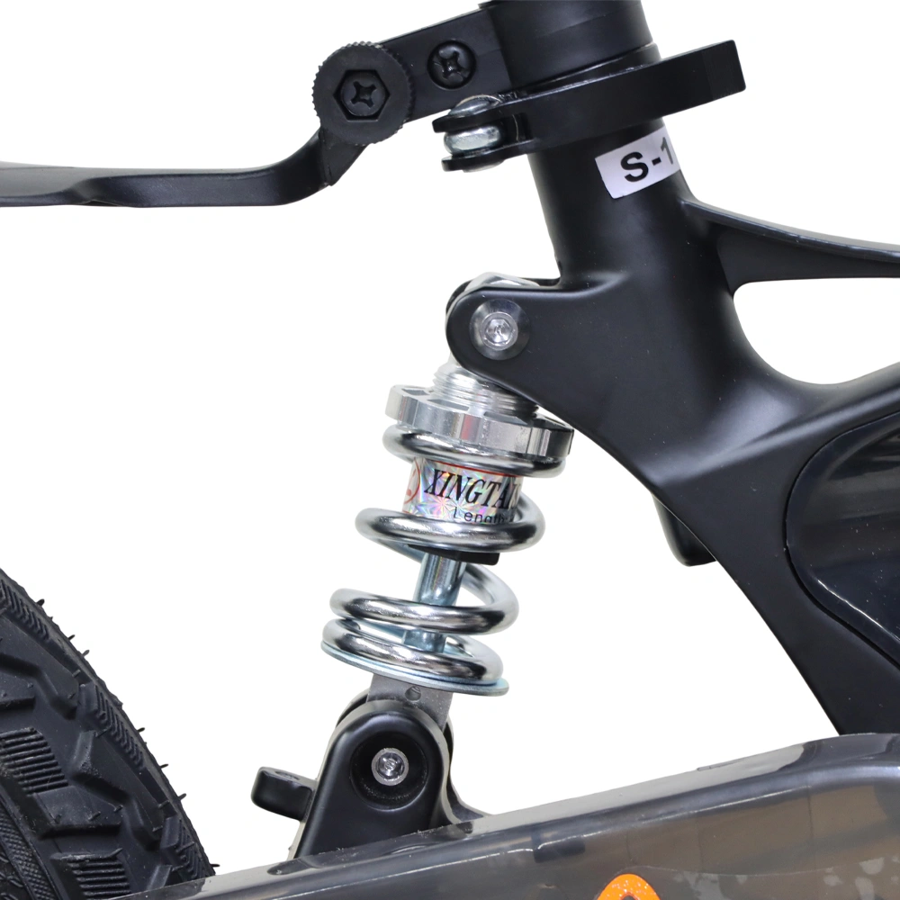 یکی از مهمترین ویژگیهای این دوچرخه، بدنه منیزیمی آن است که نسبت به آلومینیوم یا فولاد، وزن کمتری دارد و در عین حال استحکام بالایی ارائه میکند. بدنه سبک باعث میشود کودک به راحتی بتواند دوچرخه را کنترل کند و در هنگام استفاده، حس سنگینی و سختی را تجربه نکند. همچنین این بدنه در برابر زنگ زدگی و ضربات کوچک بسیار مقاوم است که طول عمر دوچرخه را افزایش میدهد.