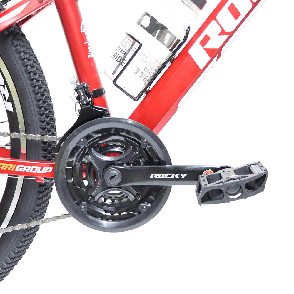طبق قامه (طبقعقامه) از برند راکی در این دوچرخه استفاده شده که با طراحی ساده و مقاوم، قدرت را به خوبی از پا به زنجیر منتقل میکند. این قطعه به کاهش اتلاف انرژی و افزایش کارایی هنگام رکاب زدن کمک میکند.