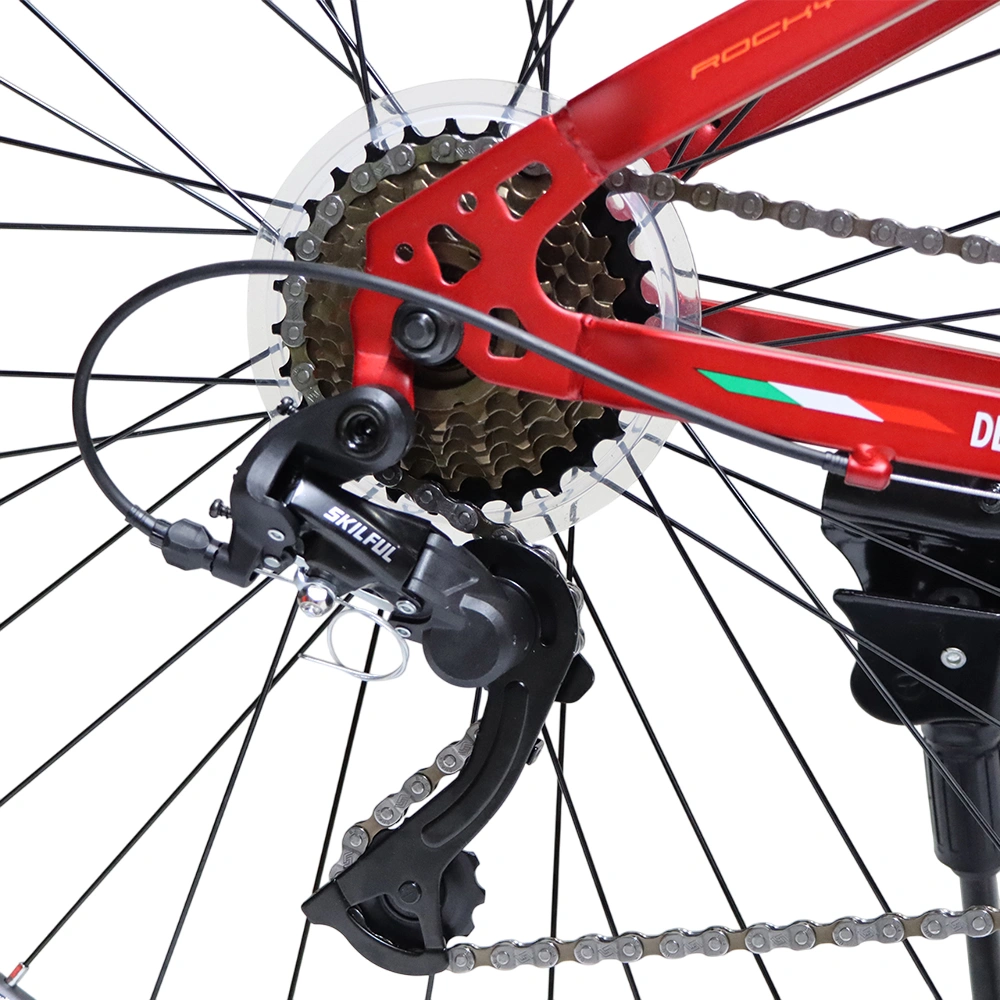 دوچرخه Rocky R2608-14 به سیستم دنده حرفهای 21 سرعته (7 دنده عقب × 3 دنده جلو) مجهز است. این دندهها با برند Skilful تولید شدهاند که به دلیل عملکرد روان و بدون گیر، در بسیاری از دوچرخههای اقتصادی بازار ایران به کار میروند. امکان تغییر دنده در موقعیتهای مختلف، مانند سربالایی یا مسیرهای صاف، به شما کمک میکند تا همیشه با کمترین انرژی، بهترین بازدهی را داشته باشید.