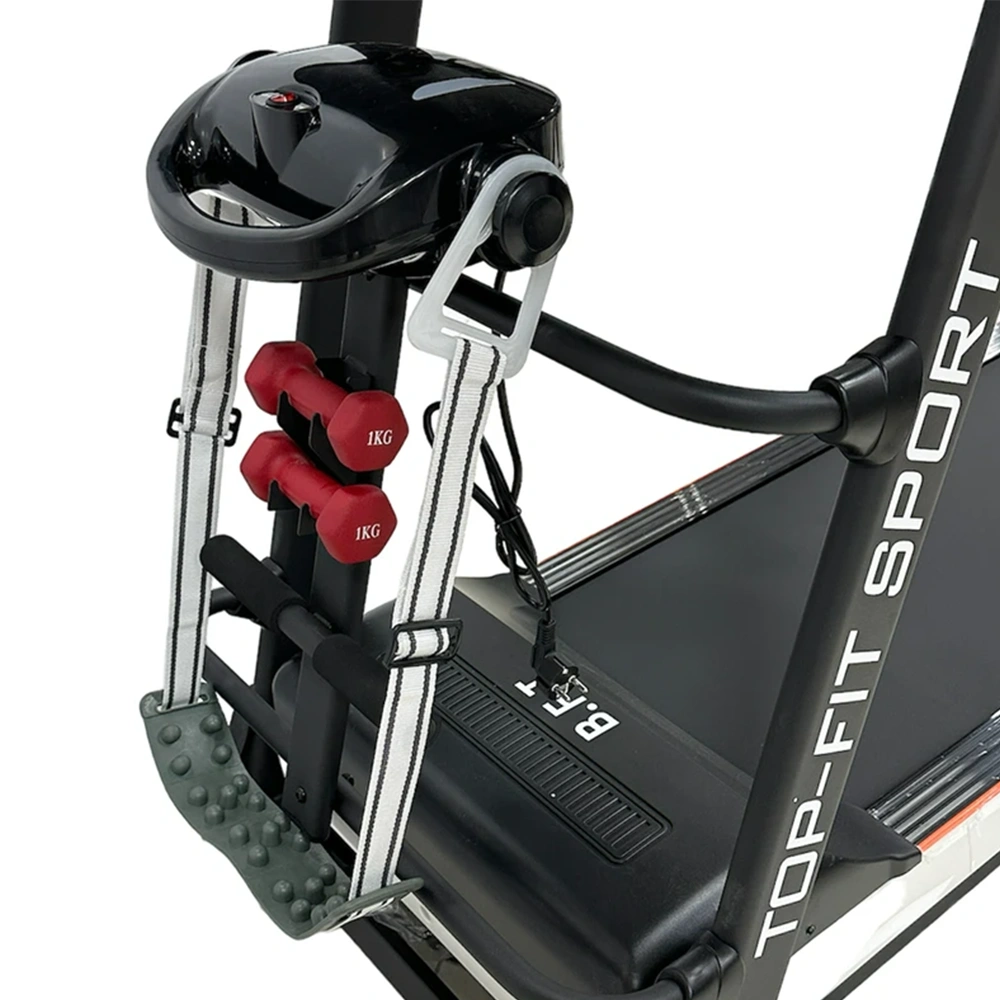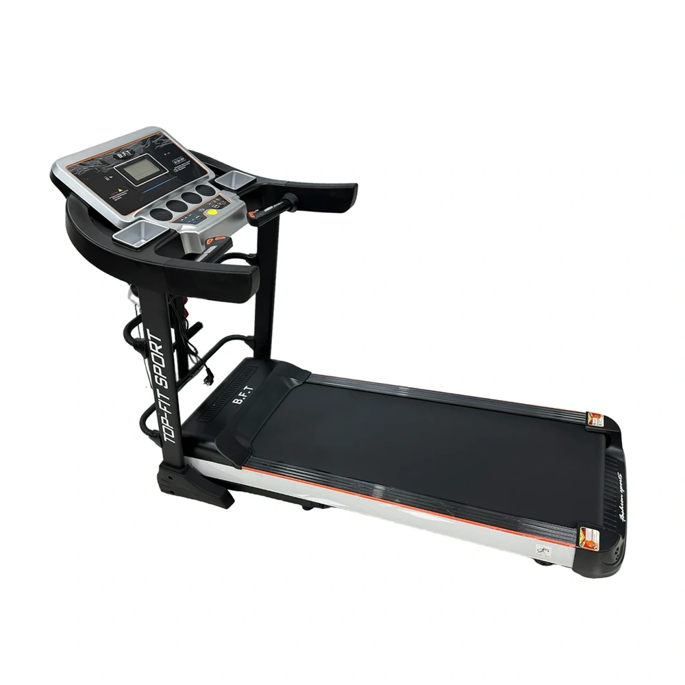 تردمیل تاپ فیت اسپرت مدل Top Fit Sport BFT‑03 یک دستگاه خانگی با طراحی حرفهای است که امکانات متنوعی را برای تمرینات ورزشی در منزل فراهم میکند. این دستگاه با موتور DC با قدرت ۲ اسب بخار، سرعتی بین ۰.۸ تا ۱۶ کیلومتر در ساعت را ارائه میدهد و شیب برقی آن تا ۱۵ درجه قابل تنظیم است.
