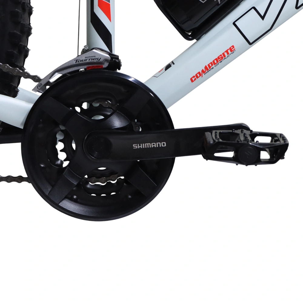 یکی از ویژگیهای کاربردی این مدل، پدالهای آلومینیومی پهن و دارای میخ است. این طراحی از سر خوردن پا در هنگام رکابزنی جلوگیری میکند و در مسیرهای خاکی یا مرطوب، به حفظ تعادل و امنیت کمک مینماید.
